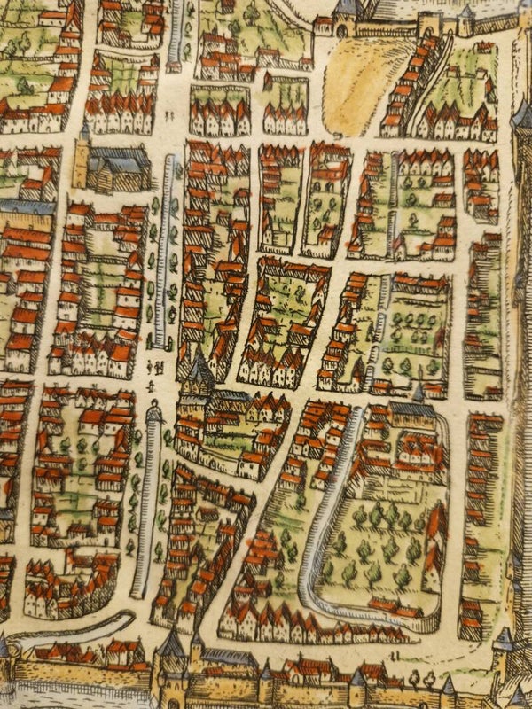 Een klein stadsplan van de zilverstad Schoonhoven door ludovicus Guicciardini. De kaart is gemaakt in 1581 en later door anderen, in dit geval J.Janssonius, opnieuw uitgegeven in 1625. De kaart is dus bijna 400 jaar oud en geeft een mooi beeld van een stadje wat nog steeds herkenbaar is. De kaart is oud gekleurt en heeft een blanco verso.