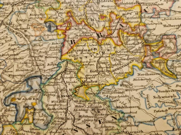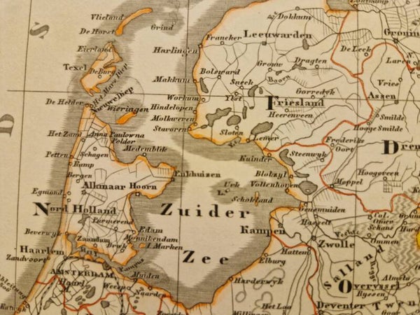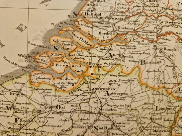 Mooie kaart van Gotha door Justus Perthes uitgebracht in 1861 in Parijs. Dit is dezelfde uitgever van de hele mooie grote schoolkaarten eind 19de eeuw. We zien hier Nederland, België, Luxenburg en een groot stuk van Duitsland.