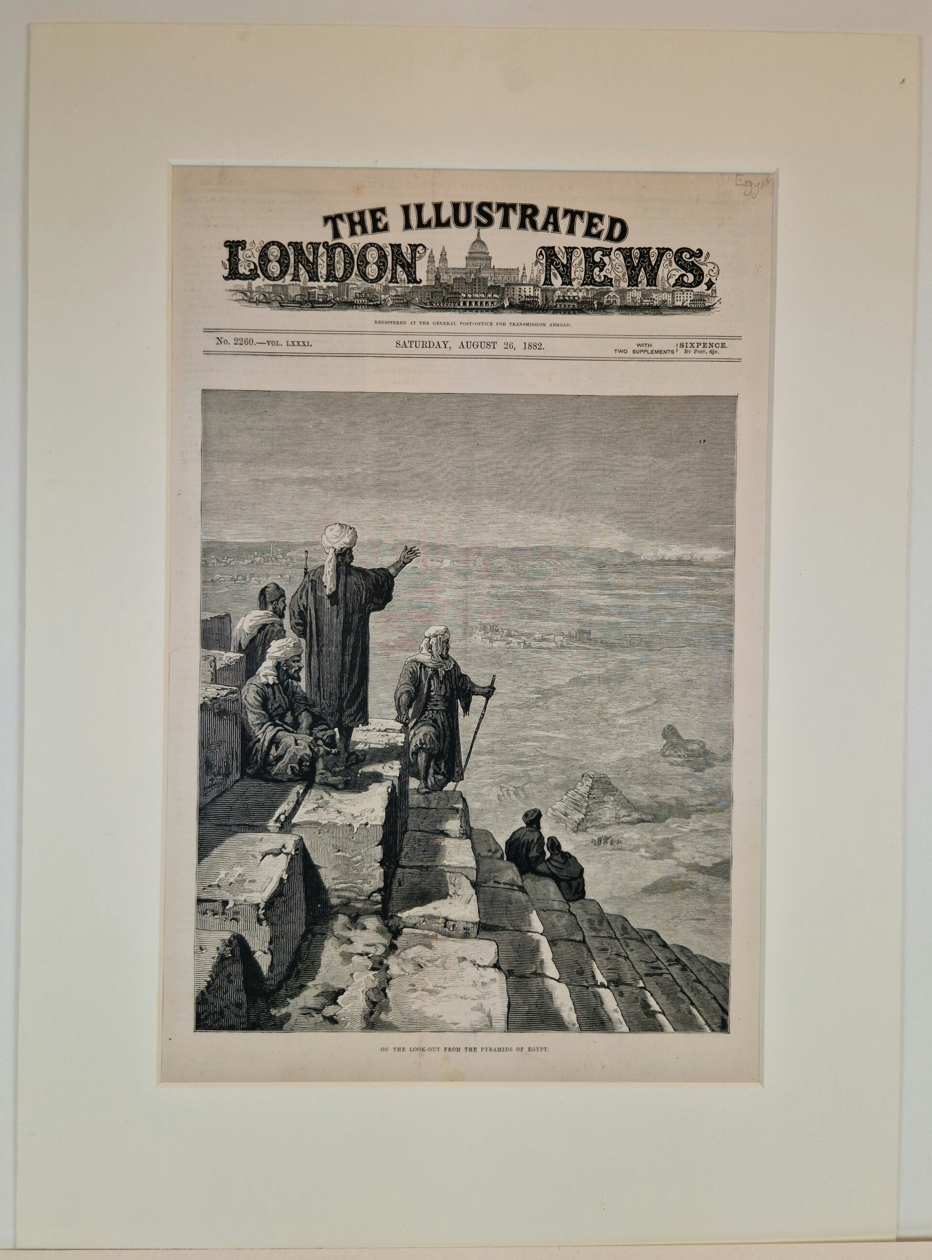 On the lookout from the piramids of Egypt is een prachtige prent. In die tijd werden lunches geserveerd boven op de piramide waar de rijken naar toe klommen om van het prachtige uitzicht te genieten. Het was een vreselijke klim want sommige stenen zijn 2 meter hoog.