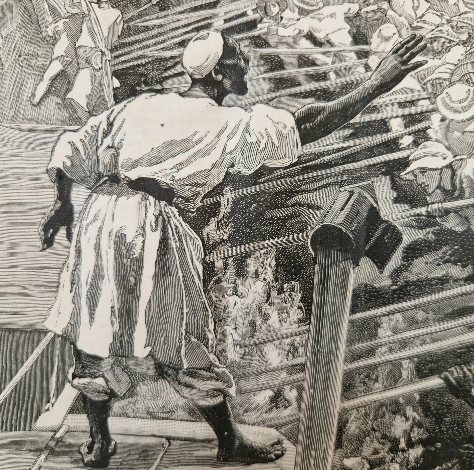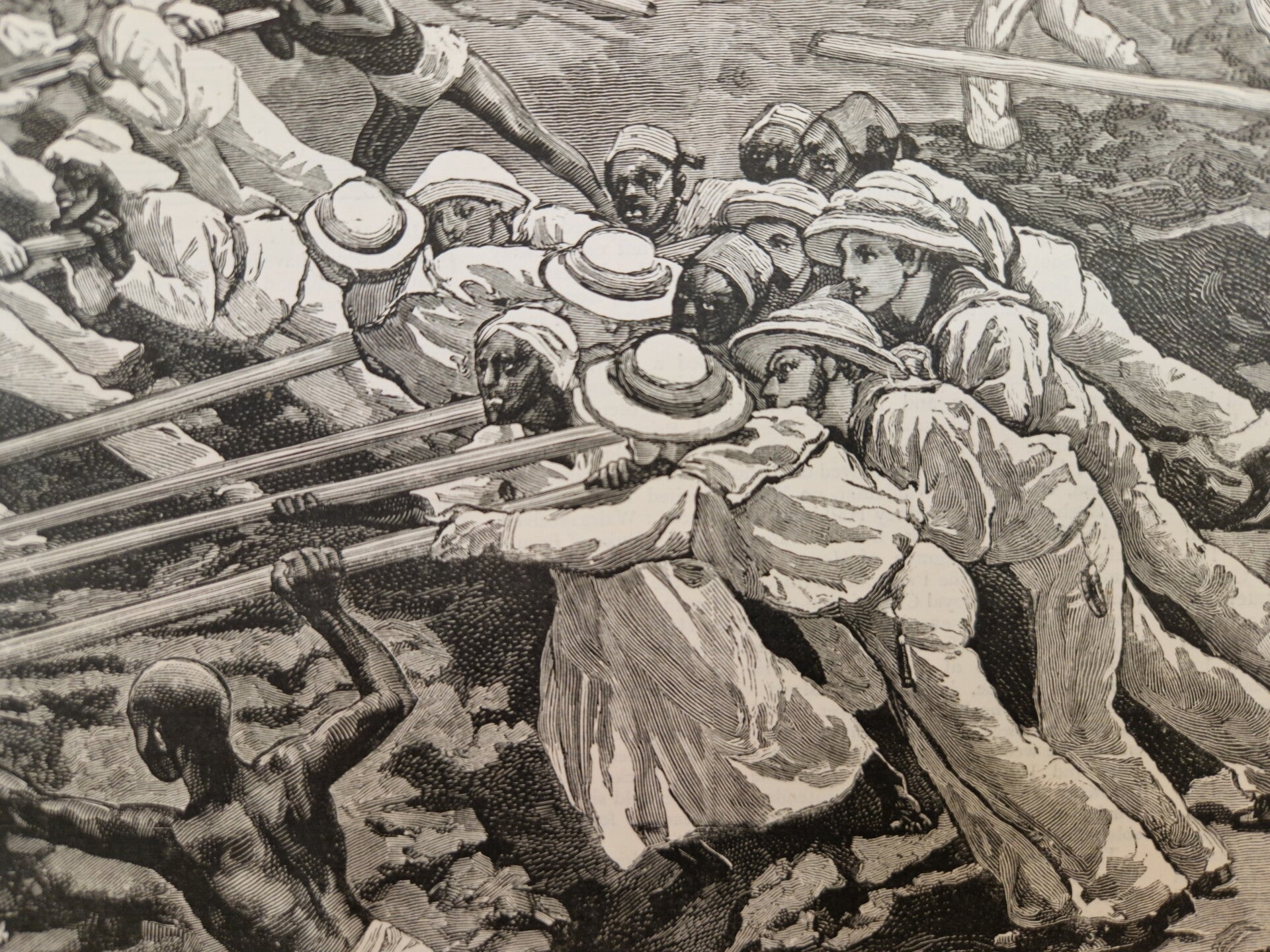 Op deze prent wordt de eerste stroomversnelling bedwongen. Het was een mega klus om dit te doen maar de enige manier om snel te reizen. Het alternatief was op een kameel door de woestijn. De achter kant geeft ook het wekelijks nieuws uit 1884.