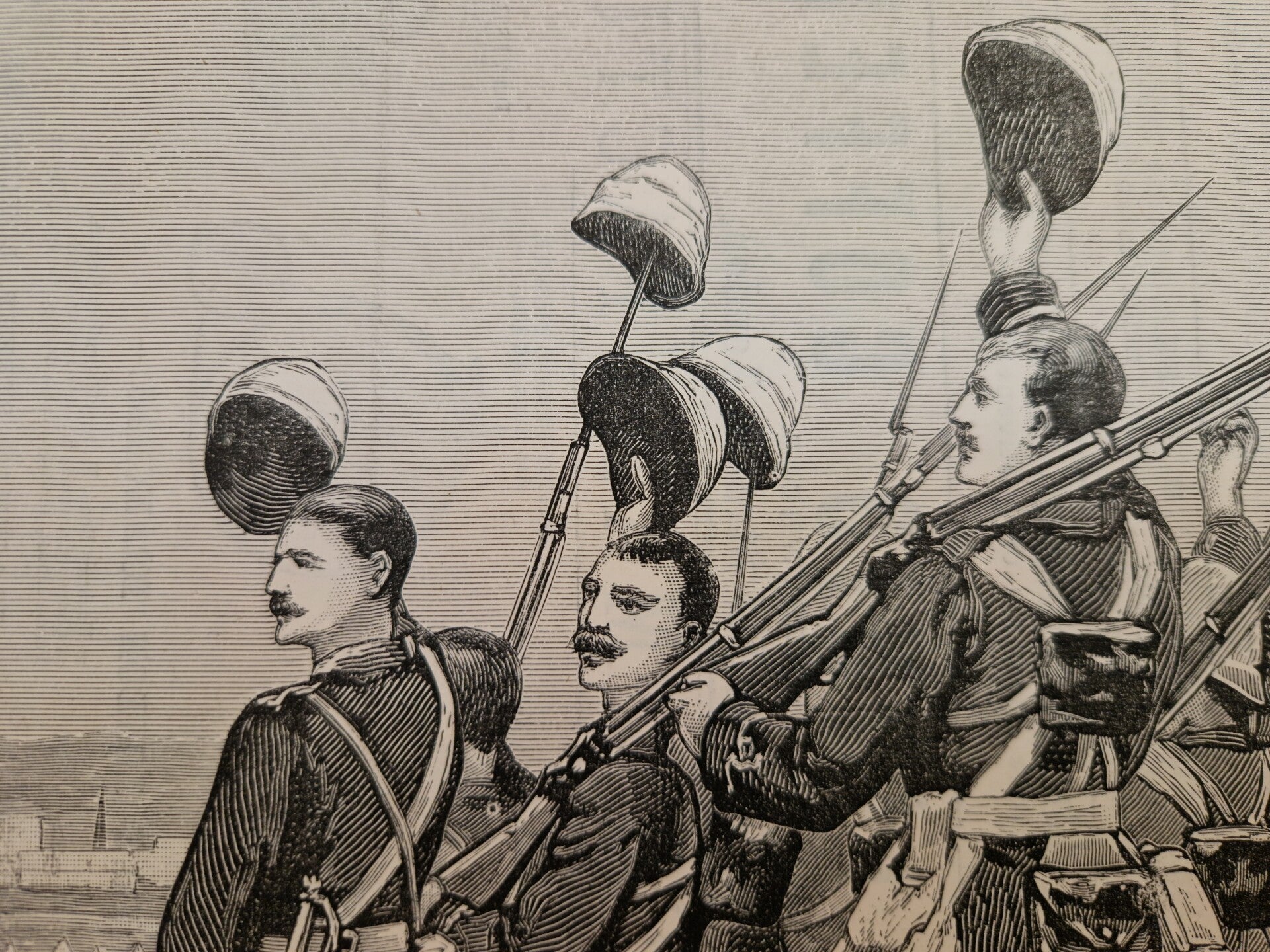 De mariniers groeten Generaal Graham na de slag bij Tel el-Kabir. Deze prent heeft op de achterkant ook nieuws en een paar mooie reclames uit1882.