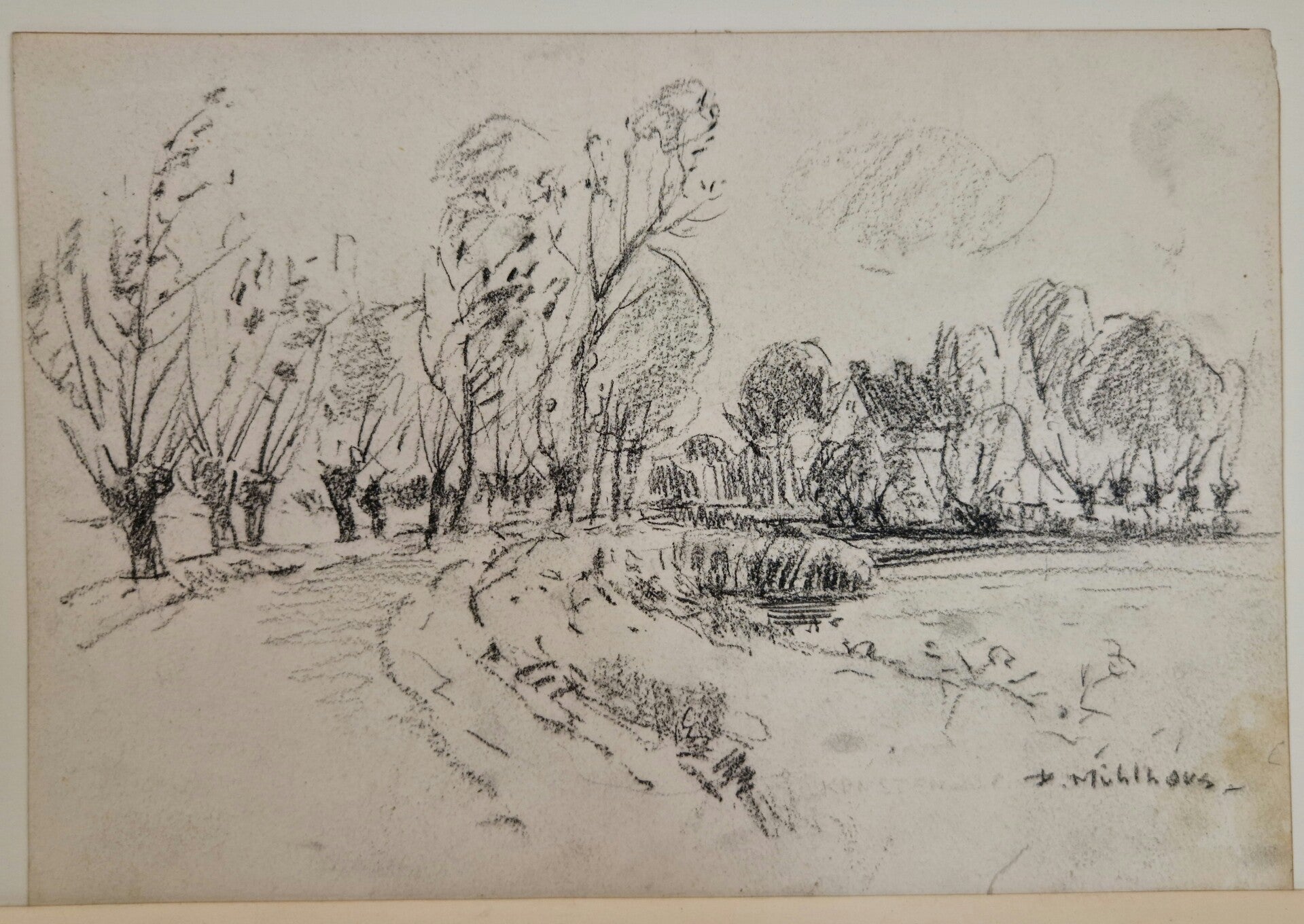 Een kleine houtskooltekening van Daan Mühlhaus. Na verschillende banen wijdde Daan Mühlhaus zich vanaf