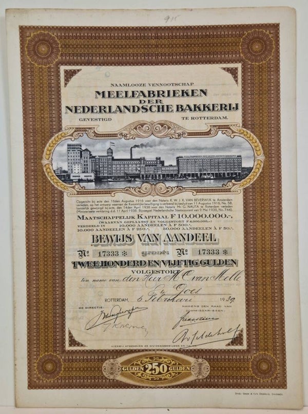 Aandelen meelfabrieken der Nederlandsche bakkerij. 1938-1939.