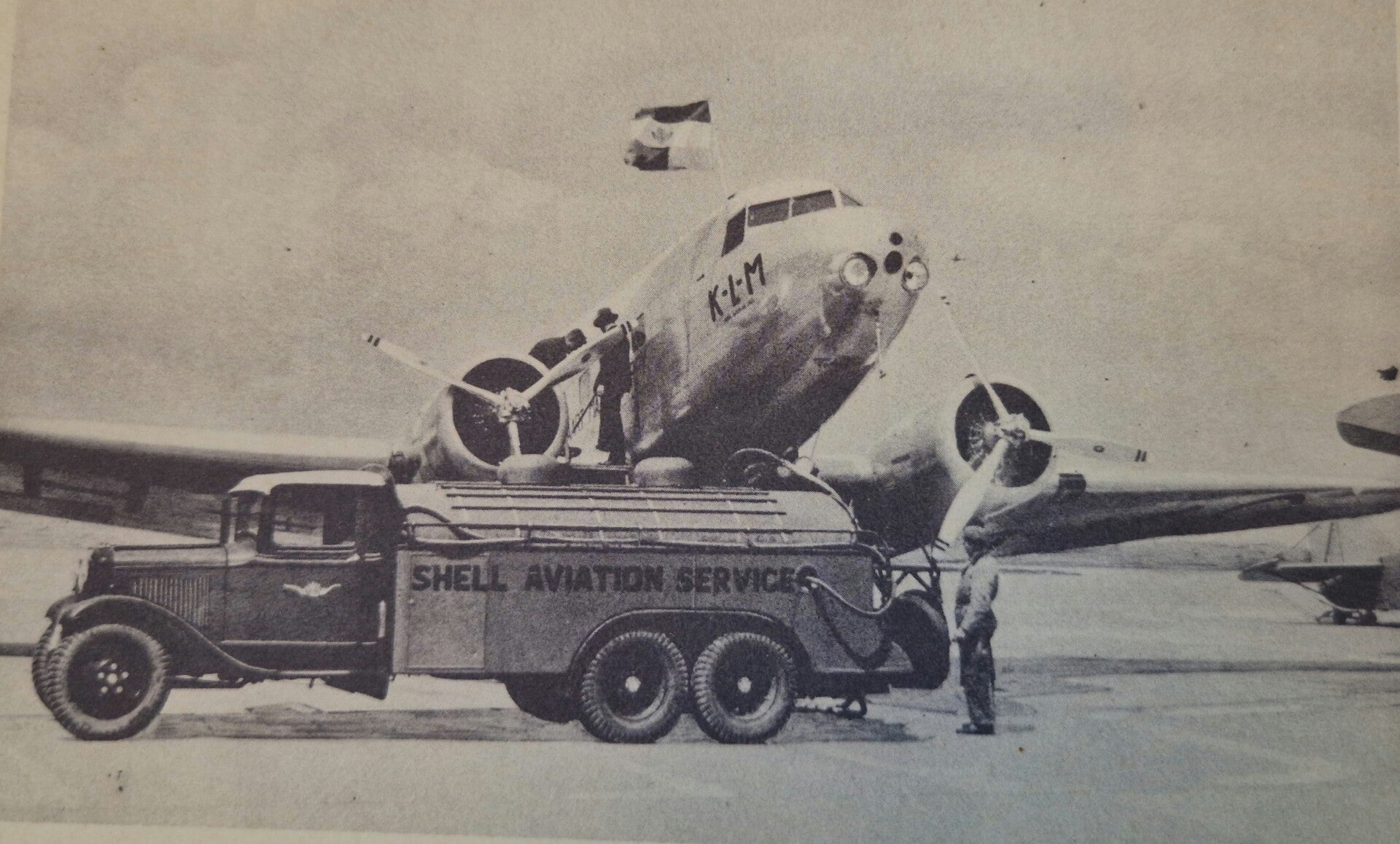K.L.M. Amsterdam-Batavia: een luchtweg van 14.0000 kilometer (8800 mijl): de regelmaat, verhoogde snelheid en het uitstekende comfort van deze lijn is gebaseerd op: K.L.M. organisatie, Fokker/Douglas Aircraft, Shell producten en Shell service. Zeer goed, Uitvouwbare papieren omslag met 6 pagina's. Elk weer 4 keer opengevouwen. Toont 17 kaarten van de route. Met op de achterzijde enkele historische foto's en details over de geschiedenis van KLM