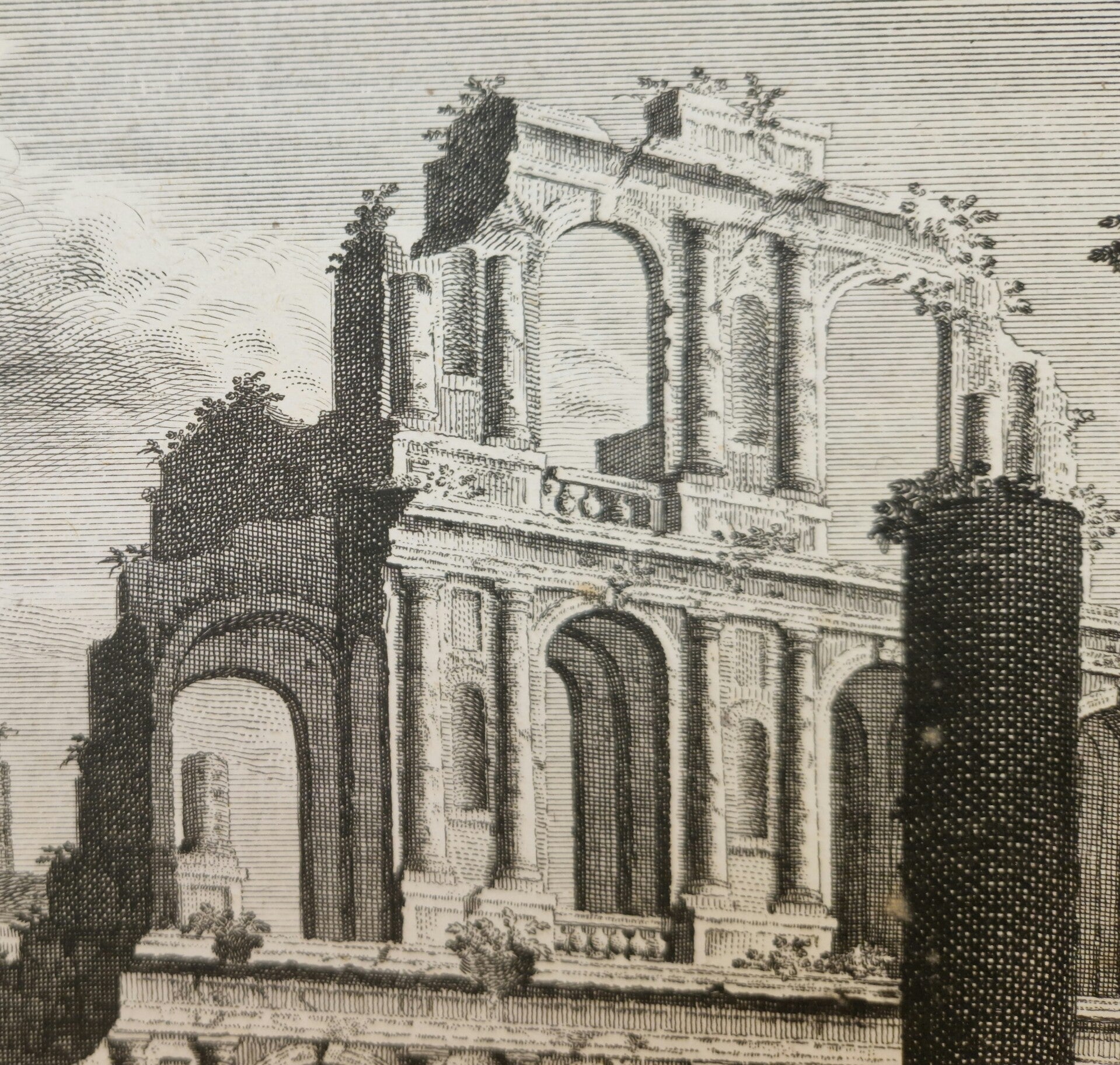 Een oude Ruïne ergens in Italië gemaakt door Johannes George Hertel en F .Costa rond 1750.