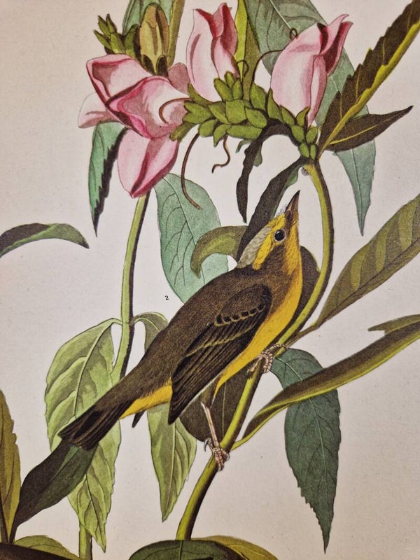 Dit is een authentieke lithografie van de Amsterdamse editie van The Birds of America van John James Audubon. In zijn monumentale meesterwerk, namelijk de Double Elephant Folio Edition van de Birds of America, gepubliceerd in de periode 1827-1838, publiceerde de natuuronderzoeker John James Audubon 435 tekeningen van de vogels die hij tekende op basis van zijn observaties in de natuur. Deze afbeeldingen werden gepubliceerd als handgekleurde gravures met aquatint en ets door Robert Havell, Jr. in Engeland. In 1971 besloten de Johnson Reprint Corporation in New York en de Amsterdamse firma Theatrum Orbis Terrarum Ltd om een zo goed mogelijke facsimile van dit meesterwerk te produceren. In 1971 en 1972 publiceerden deze twee firma's slechts 250 exemplaren van de volledige 435 platen van de originele Robert Havell's kopie van de Double Elephant Folio met behulp van kleurenfotolithografie (deze afdrukken vertonen dus het karakteristieke puntmatrixpatroon van offsetlithografie bij onderzoek met een 10x of 15x vergrotingsloep). Deze prenten staan bekend als de Amsterdam Edition van het Double Elephant-folio en zijn daarmee de eerste volledige facsimile van het originele monumentale werk van Audubon. Om de textuur van het originele J Whatman-papier dat in de originele Havell-editie werd gebruikt, te reproduceren, werd voor de Amsterdamse editie het beroemde papierbedrijf G. Schut & Zonen gebruikt om speciaal 100% katoenen voddenpapier van museumkwaliteit te produceren voor het afdrukken van deze platen. Er werd slechts een beperkte set van 250 exemplaren van elk van de platen geproduceerd. De prenten van de Amsterdamse editie zijn te herkennen aan het unieke watermerk "G. Schut & Zonen (R) Audubon" langs de lange rand. De volledige vellen meten ongeveer 73 x 103 cm en de wat kleinere 48 x 68 cm. Ingelijst zijn ze een sieraad aan de muur. We hebben 100 fullsize verschillende vogels en 70 op het kleinere formaat. In de winkel zijn ze allemaal te bewonderen.