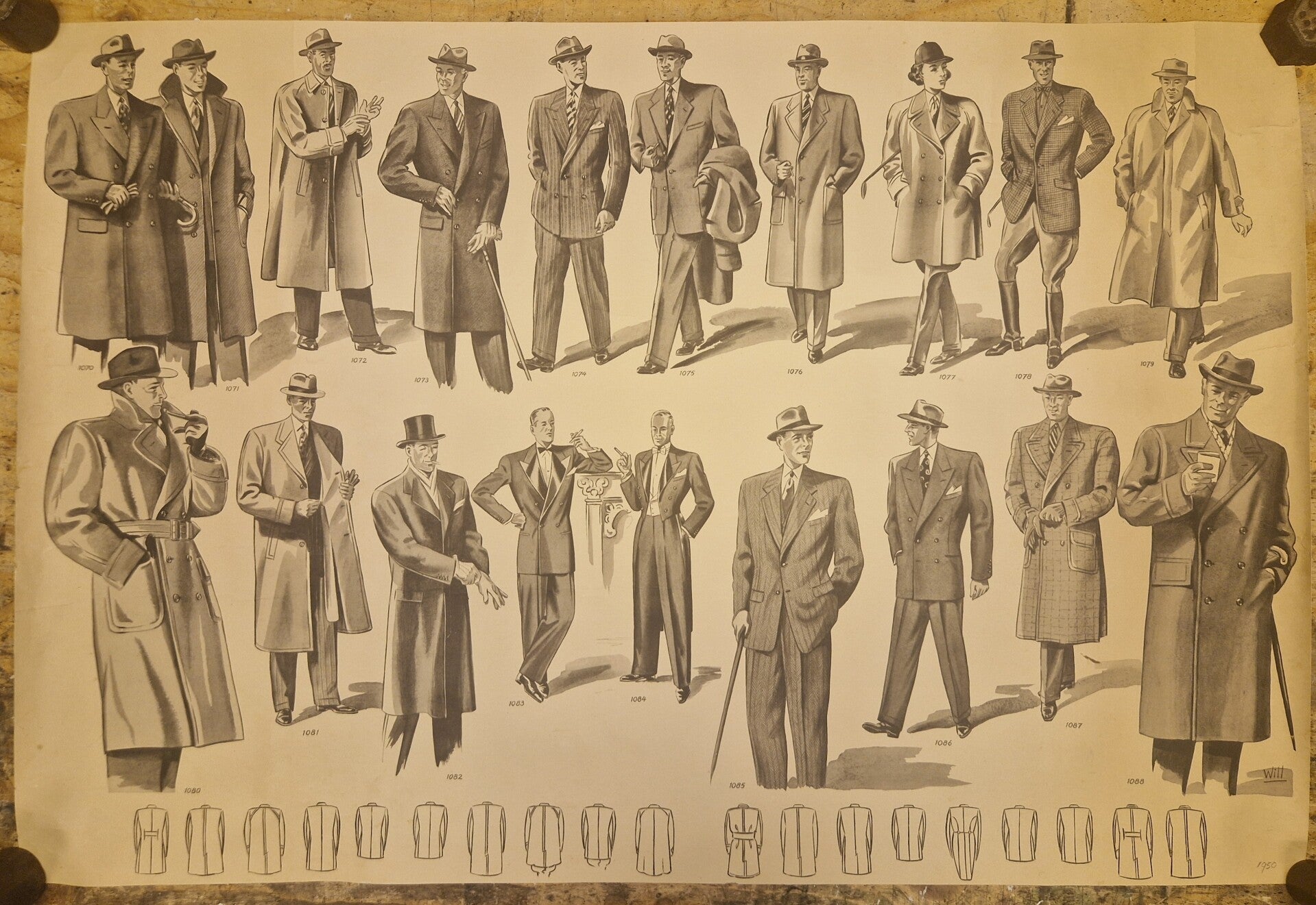 Prachtige grote poster van de laatste mode voor dame en heren. Dit geeft een mooi beeld van de mode en het straat- en uitgaans wereld uit 1950.