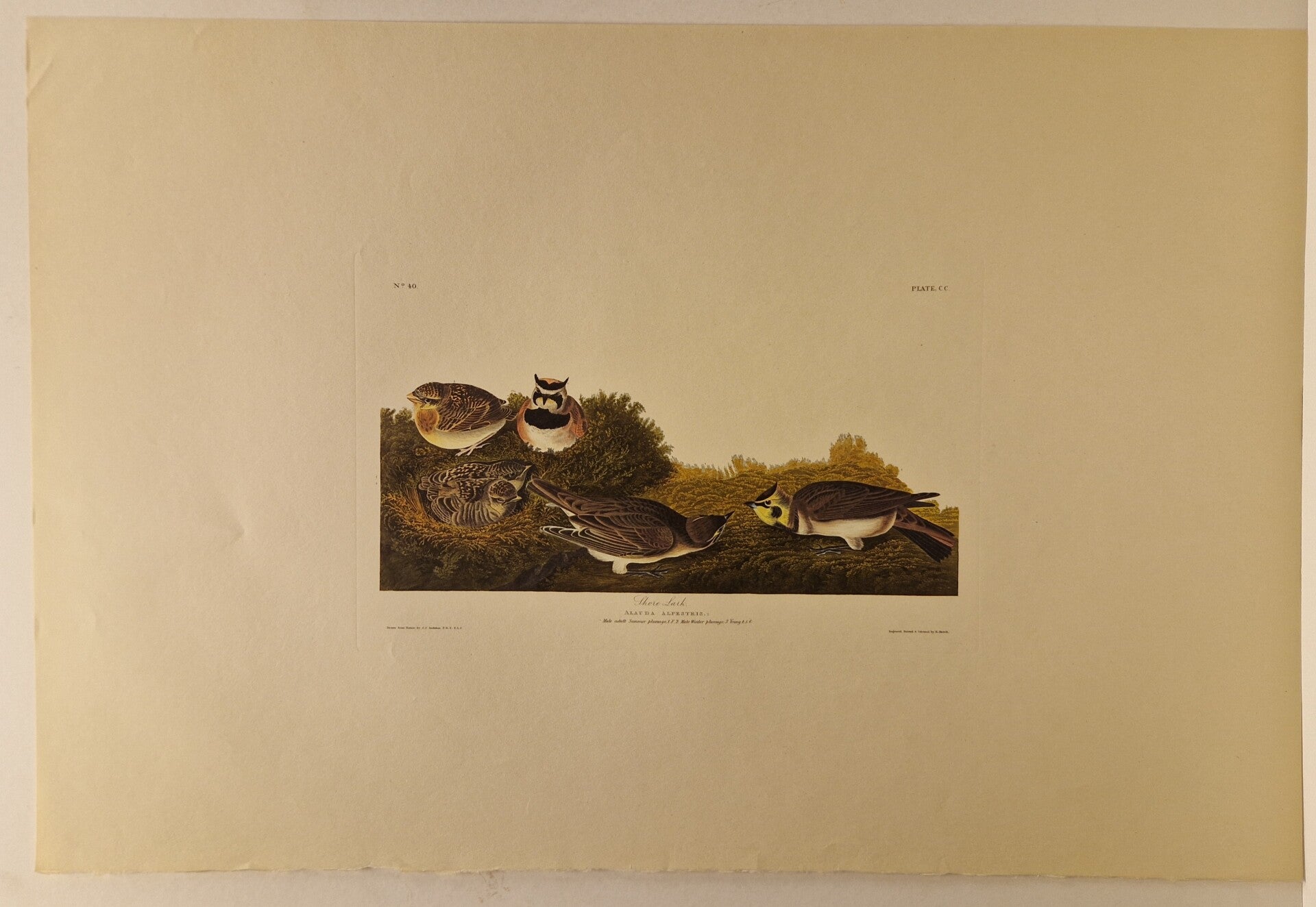 Dit is een authentieke lithografie van de Amsterdamse editie van The Birds of America van John James Audubon. In zijn monumentale meesterwerk, namelijk de Double Elephant Folio Edition van de Birds of America, gepubliceerd in de periode 1827-1838, publiceerde de natuuronderzoeker John James Audubon 435 tekeningen van de vogels die hij tekende op basis van zijn observaties in de natuur. Deze afbeeldingen werden gepubliceerd als handgekleurde gravures met aquatint en ets door Robert Havell, Jr. in Engeland. In 1971 besloten de Johnson Reprint Corporation in New York en de Amsterdamse firma Theatrum Orbis Terrarum Ltd om een zo goed mogelijke facsimile van dit meesterwerk te produceren. In 1971 en 1972 publiceerden deze twee firma's slechts 250 exemplaren van de volledige 435 platen van de originele Robert Havell's kopie van de Double Elephant Folio met behulp van kleurenfotolithografie (deze afdrukken vertonen dus het karakteristieke puntmatrixpatroon van offsetlithografie bij onderzoek met een 10x of 15x vergrotingsloep). Deze prenten staan bekend als de Amsterdam Edition van het Double Elephant-folio en zijn daarmee de eerste volledige facsimile van het originele monumentale werk van Audubon. Om de textuur van het originele J Whatman-papier dat in de originele Havell-editie werd gebruikt, te reproduceren, werd voor de Amsterdamse editie het beroemde papierbedrijf G. Schut & Zonen gebruikt om speciaal 100% katoenen voddenpapier van museumkwaliteit te produceren voor het afdrukken van deze platen. Er werd slechts een beperkte set van 250 exemplaren van elk van de platen geproduceerd. De prenten van de Amsterdamse editie zijn te herkennen aan het unieke watermerk "G. Schut & Zonen (R) Audubon" langs de lange rand. De volledige vellen meten ongeveer 73 x 103 cm en de wat kleinere 48 x 68 cm. Ingelijst zijn ze een sieraad aan de muur. We hebben 100 fullsize verschillende vogels en 70 op het kleinere formaat. In de winkel zijn ze allemaal te bewonderen.