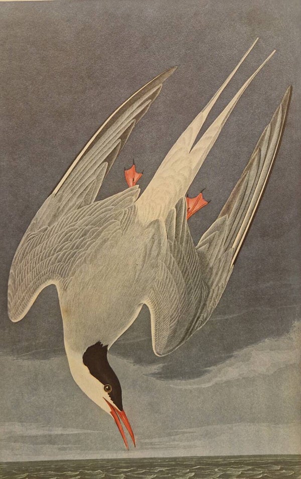 Dit is een authentieke lithografie van de Amsterdamse editie van The Birds of America van John James Audubon. In zijn monumentale meesterwerk, namelijk de Double Elephant Folio Edition van de Birds of America, gepubliceerd in de periode 1827-1838, publiceerde de natuuronderzoeker John James Audubon 435 tekeningen van de vogels die hij tekende op basis van zijn observaties in de natuur. Deze afbeeldingen werden gepubliceerd als handgekleurde gravures met aquatint en ets door Robert Havell, Jr. in Engeland. In 1971 besloten de Johnson Reprint Corporation in New York en de Amsterdamse firma Theatrum Orbis Terrarum Ltd om een zo goed mogelijke facsimile van dit meesterwerk te produceren. In 1971 en 1972 publiceerden deze twee firma's slechts 250 exemplaren van de volledige 435 platen van de originele Robert Havell's kopie van de Double Elephant Folio met behulp van kleurenfotolithografie (deze afdrukken vertonen dus het karakteristieke puntmatrixpatroon van offsetlithografie bij onderzoek met een 10x of 15x vergrotingsloep). Deze prenten staan bekend als de Amsterdam Edition van het Double Elephant-folio en zijn daarmee de eerste volledige facsimile van het originele monumentale werk van Audubon. Om de textuur van het originele J Whatman-papier dat in de originele Havell-editie werd gebruikt, te reproduceren, werd voor de Amsterdamse editie het beroemde papierbedrijf G. Schut & Zonen gebruikt om speciaal 100% katoenen voddenpapier van museumkwaliteit te produceren voor het afdrukken van deze platen. Er werd slechts een beperkte set van 250 exemplaren van elk van de platen geproduceerd. De prenten van de Amsterdamse editie zijn te herkennen aan het unieke watermerk "G. Schut & Zonen (R) Audubon" langs de lange rand. De volledige vellen meten ongeveer 73 x 103 cm en de wat kleinere 48 x 68 cm. Ingelijst zijn ze een sieraad aan de muur. We hebben 100 fullsize verschillende vogels en 70 op het kleinere formaat. In de winkel zijn ze allemaal te bewonderen.