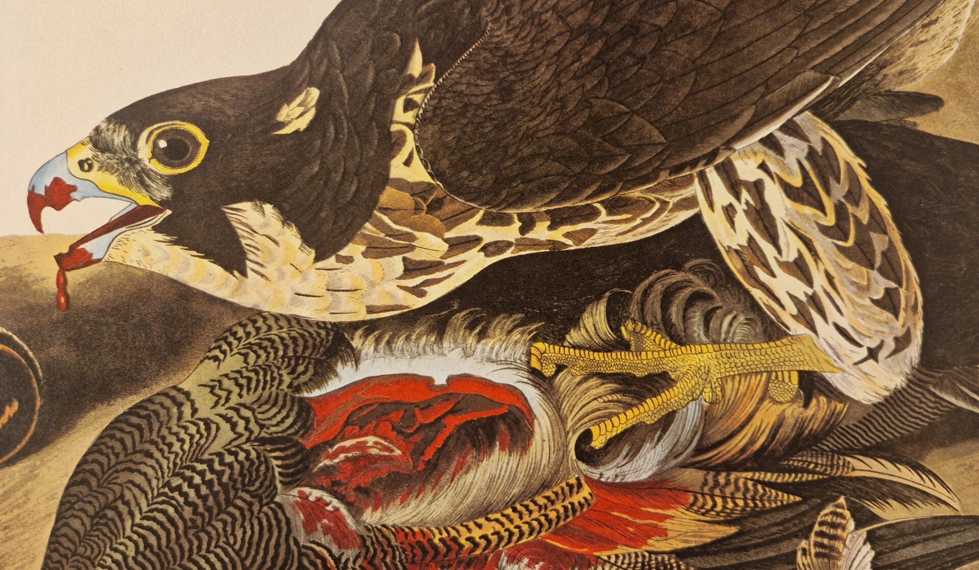 Dit is een authentieke lithografie van de Amsterdamse editie van The Birds of America van John James Audubon. In zijn monumentale meesterwerk, namelijk de Double Elephant Folio Edition van de Birds of America, gepubliceerd in de periode 1827-1838, publiceerde de natuuronderzoeker John James Audubon 435 tekeningen van de vogels die hij tekende op basis van zijn observaties in de natuur. Deze afbeeldingen werden gepubliceerd als handgekleurde gravures met aquatint en ets door Robert Havell, Jr. in Engeland. In 1971 besloten de Johnson Reprint Corporation in New York en de Amsterdamse firma Theatrum Orbis Terrarum Ltd om een zo goed mogelijke facsimile van dit meesterwerk te produceren. In 1971 en 1972 publiceerden deze twee firma's slechts 250 exemplaren van de volledige 435 platen van de originele Robert Havell's kopie van de Double Elephant Folio met behulp van kleurenfotolithografie (deze afdrukken vertonen dus het karakteristieke puntmatrixpatroon van offsetlithografie bij onderzoek met een 10x of 15x vergrotingsloep). Deze prenten staan bekend als de Amsterdam Edition van het Double Elephant-folio en zijn daarmee de eerste volledige facsimile van het originele monumentale werk van Audubon. Om de textuur van het originele J Whatman-papier dat in de originele Havell-editie werd gebruikt, te reproduceren, werd voor de Amsterdamse editie het beroemde papierbedrijf G. Schut & Zonen gebruikt om speciaal 100% katoenen voddenpapier van museumkwaliteit te produceren voor het afdrukken van deze platen. Er werd slechts een beperkte set van 250 exemplaren van elk van de platen geproduceerd. De prenten van de Amsterdamse editie zijn te herkennen aan het unieke watermerk "G. Schut & Zonen (R) Audubon" langs de lange rand. De volledige vellen meten ongeveer 73 x 103 cm en de wat kleinere 48 x 68 cm. Ingelijst zijn ze een sieraad aan de muur. We hebben 100 fullsize verschillende vogels en 70 op het kleinere formaat. In de winkel zijn ze allemaal te bewonderen.