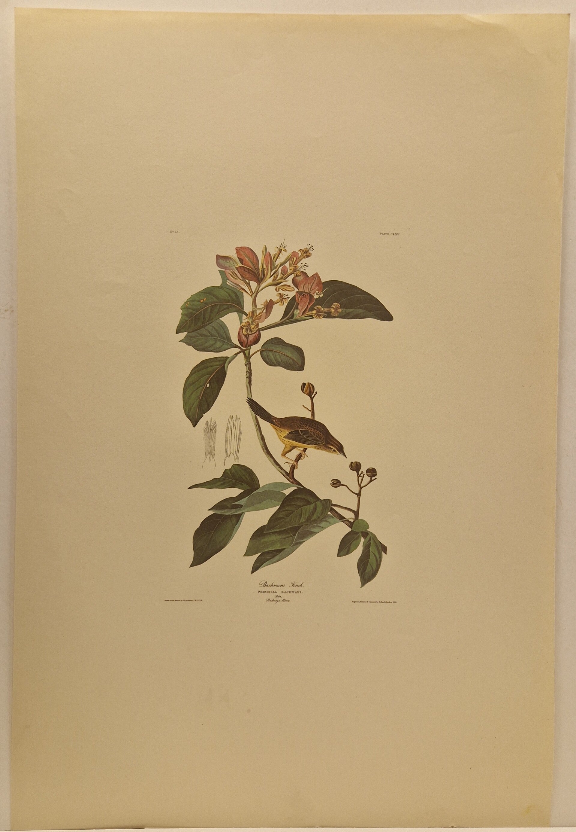 Dit is een authentieke lithografie van de Amsterdamse editie van The Birds of America van John James Audubon. In zijn monumentale meesterwerk, namelijk de Double Elephant Folio Edition van de Birds of America, gepubliceerd in de periode 1827-1838, publiceerde de natuuronderzoeker John James Audubon 435 tekeningen van de vogels die hij tekende op basis van zijn observaties in de natuur. Deze afbeeldingen werden gepubliceerd als handgekleurde gravures met aquatint en ets door Robert Havell, Jr. in Engeland. In 1971 besloten de Johnson Reprint Corporation in New York en de Amsterdamse firma Theatrum Orbis Terrarum Ltd om een zo goed mogelijke facsimile van dit meesterwerk te produceren. In 1971 en 1972 publiceerden deze twee firma's slechts 250 exemplaren van de volledige 435 platen van de originele Robert Havell's kopie van de Double Elephant Folio met behulp van kleurenfotolithografie (deze afdrukken vertonen dus het karakteristieke puntmatrixpatroon van offsetlithografie bij onderzoek met een 10x of 15x vergrotingsloep). Deze prenten staan bekend als de Amsterdam Edition van het Double Elephant-folio en zijn daarmee de eerste volledige facsimile van het originele monumentale werk van Audubon. Om de textuur van het originele J Whatman-papier dat in de originele Havell-editie werd gebruikt, te reproduceren, werd voor de Amsterdamse editie het beroemde papierbedrijf G. Schut & Zonen gebruikt om speciaal 100% katoenen voddenpapier van museumkwaliteit te produceren voor het afdrukken van deze platen. Er werd slechts een beperkte set van 250 exemplaren van elk van de platen geproduceerd. De prenten van de Amsterdamse editie zijn te herkennen aan het unieke watermerk "G. Schut & Zonen (R) Audubon" langs de lange rand. De volledige vellen meten ongeveer 73 x 103 cm en de wat kleinere 48 x 68 cm. Ingelijst zijn ze een sieraad aan de muur. We hebben 100 fullsize verschillende vogels en 70 op het kleinere formaat. In de winkel zijn ze allemaal te bewonderen.