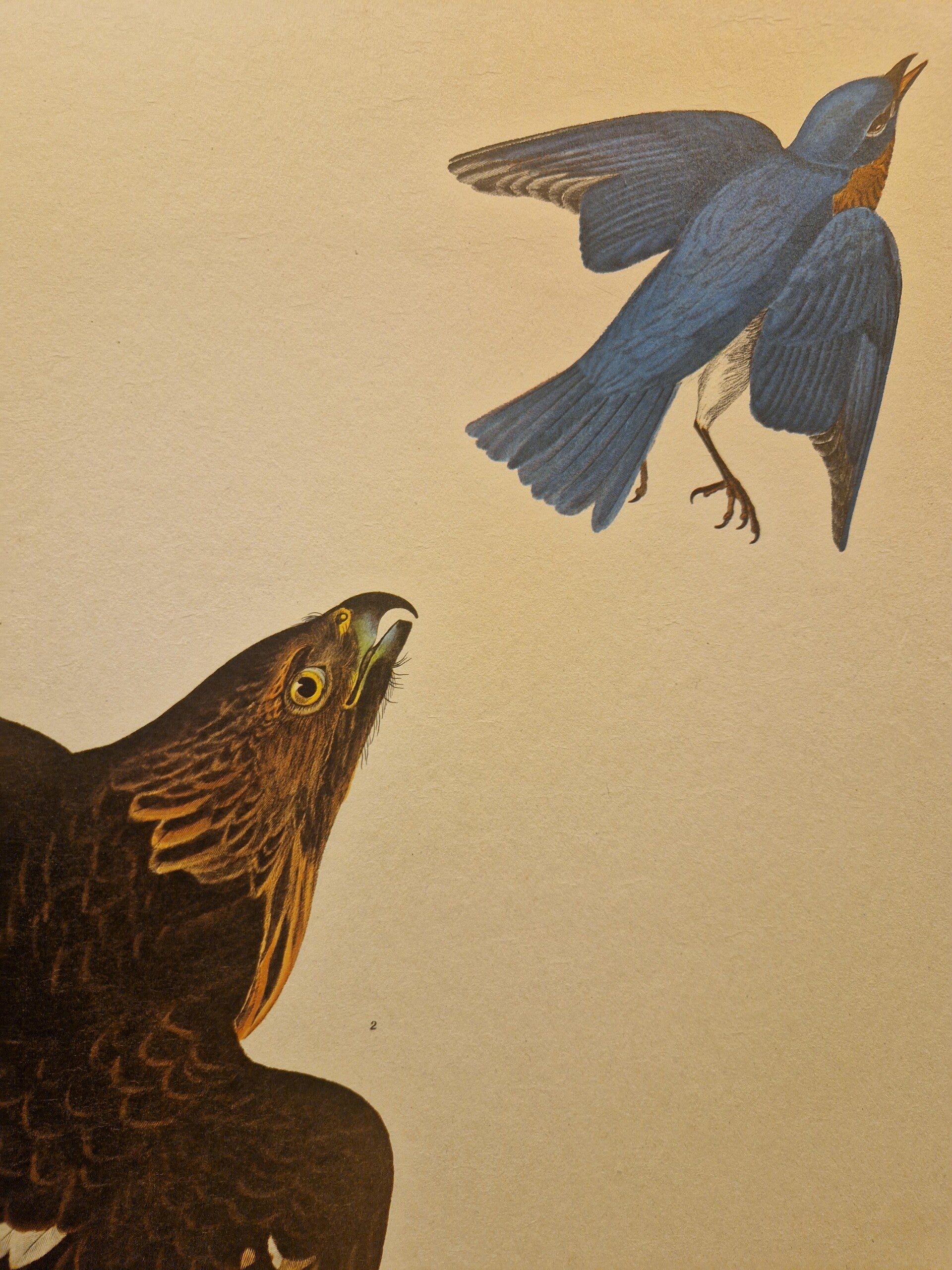 Dit is een authentieke lithografie van de Amsterdamse editie van The Birds of America van John James Audubon. In zijn monumentale meesterwerk, namelijk de Double Elephant Folio Edition van de Birds of America, gepubliceerd in de periode 1827-1838, publiceerde de natuuronderzoeker John James Audubon 435 tekeningen van de vogels die hij tekende op basis van zijn observaties in de natuur. Deze afbeeldingen werden gepubliceerd als handgekleurde gravures met aquatint en ets door Robert Havell, Jr. in Engeland. In 1971 besloten de Johnson Reprint Corporation in New York en de Amsterdamse firma Theatrum Orbis Terrarum Ltd om een zo goed mogelijke facsimile van dit meesterwerk te produceren. In 1971 en 1972 publiceerden deze twee firma's slechts 250 exemplaren van de volledige 435 platen van de originele Robert Havell's kopie van de Double Elephant Folio met behulp van kleurenfotolithografie (deze afdrukken vertonen dus het karakteristieke puntmatrixpatroon van offsetlithografie bij onderzoek met een 10x of 15x vergrotingsloep). Deze prenten staan bekend als de Amsterdam Edition van het Double Elephant-folio en zijn daarmee de eerste volledige facsimile van het originele monumentale werk van Audubon. Om de textuur van het originele J Whatman-papier dat in de originele Havell-editie werd gebruikt, te reproduceren, werd voor de Amsterdamse editie het beroemde papierbedrijf G. Schut & Zonen gebruikt om speciaal 100% katoenen voddenpapier van museumkwaliteit te produceren voor het afdrukken van deze platen. Er werd slechts een beperkte set van 250 exemplaren van elk van de platen geproduceerd. De prenten van de Amsterdamse editie zijn te herkennen aan het unieke watermerk "G. Schut & Zonen (R) Audubon" langs de lange rand. De volledige vellen meten ongeveer 73 x 103 cm en de wat kleinere 48 x 68 cm. Ingelijst zijn ze een sieraad aan de muur. We hebben 100 fullsize verschillende vogels en 70 op het kleinere formaat. In de winkel zijn ze allemaal te bewonderen.