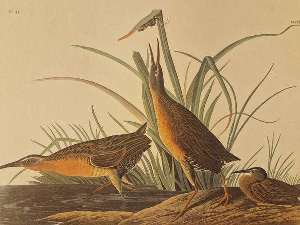Dit is een authentieke lithografie van de Amsterdamse editie van The Birds of America van John James Audubon. In zijn monumentale meesterwerk, namelijk de Double Elephant Folio Edition van de Birds of America, gepubliceerd in de periode 1827-1838, publiceerde de natuuronderzoeker John James Audubon 435 tekeningen van de vogels die hij tekende op basis van zijn observaties in de natuur. Deze afbeeldingen werden gepubliceerd als handgekleurde gravures met aquatint en ets door Robert Havell, Jr. in Engeland. In 1971 besloten de Johnson Reprint Corporation in New York en de Amsterdamse firma Theatrum Orbis Terrarum Ltd om een zo goed mogelijke facsimile van dit meesterwerk te produceren. In 1971 en 1972 publiceerden deze twee firma's slechts 250 exemplaren van de volledige 435 platen van de originele Robert Havell's kopie van de Double Elephant Folio met behulp van kleurenfotolithografie (deze afdrukken vertonen dus het karakteristieke puntmatrixpatroon van offsetlithografie bij onderzoek met een 10x of 15x vergrotingsloep). Deze prenten staan bekend als de Amsterdam Edition van het Double Elephant-folio en zijn daarmee de eerste volledige facsimile van het originele monumentale werk van Audubon. Om de textuur van het originele J Whatman-papier dat in de originele Havell-editie werd gebruikt, te reproduceren, werd voor de Amsterdamse editie het beroemde papierbedrijf G. Schut & Zonen gebruikt om speciaal 100% katoenen voddenpapier van museumkwaliteit te produceren voor het afdrukken van deze platen. Er werd slechts een beperkte set van 250 exemplaren van elk van de platen geproduceerd. De prenten van de Amsterdamse editie zijn te herkennen aan het unieke watermerk "G. Schut & Zonen (R) Audubon" langs de lange rand. De volledige vellen meten ongeveer 73 x 103 cm en de wat kleinere 48 x 68 cm. Ingelijst zijn ze een sieraad aan de muur. We hebben 100 fullsize verschillende vogels en 70 op het kleinere formaat. In de winkel zijn ze allemaal te bewonderen.