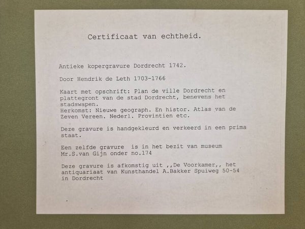 Dordrecht. H.de Leth 1740.